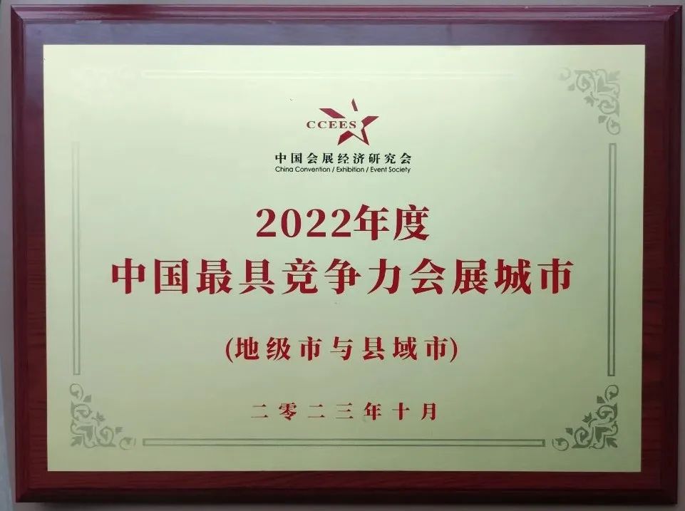 近日,在中国会展经济研究会主办的2023中国会展城市产业合作大会暨会展城市竞争力指数发布会上,我市获评“2022年中国最具竞争力会展城市(地级市)”。