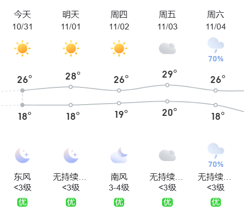 上海近几日气温有所回升,大约在18~29℃左右,建议轻薄上阵,但记得备一件外套以备不时之需。