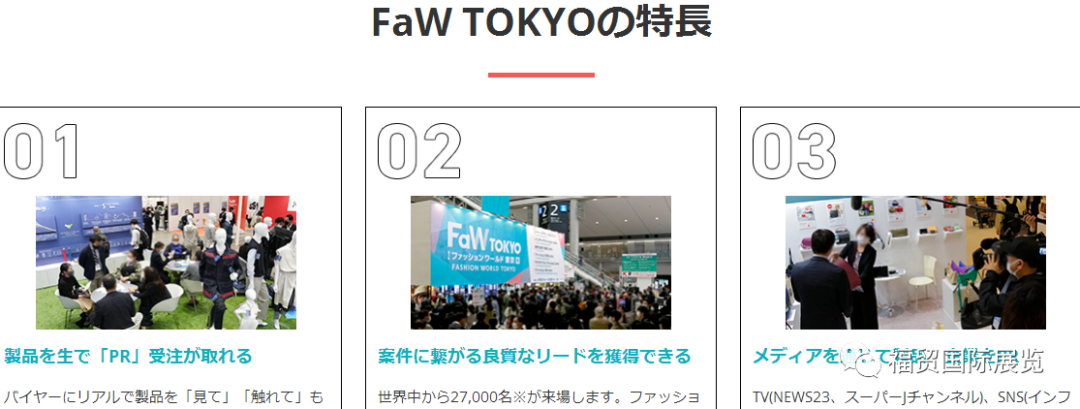 FaW TOKYO展会上届汇集来自全球的1,000家参展商,集结最新可持续时尚,潮牌男装女装、箱包、鞋靴、饰品配件、面料辅料、时尚科技相关产品,是中国企业开拓日本时尚市场的最佳平台。