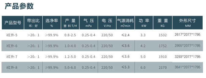 ♦进口红外传感器:专为同色不同质塑料分选而定制的进口红外传感器,可精准获取独特近红外光谱信息。