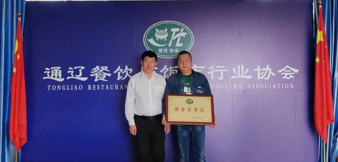 2023年9月17日通辽餐饮与饭店行业协会会长靳庆龙,为新入会的副会长单位科尔沁区谭记麻辣先生麻辣小海鲜店、常务理事单位通辽经济技术开发区陆号小巷餐饮店授牌。
