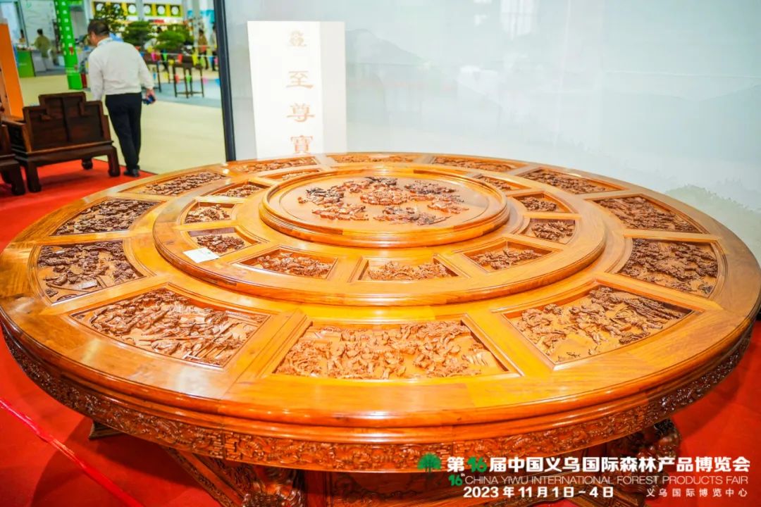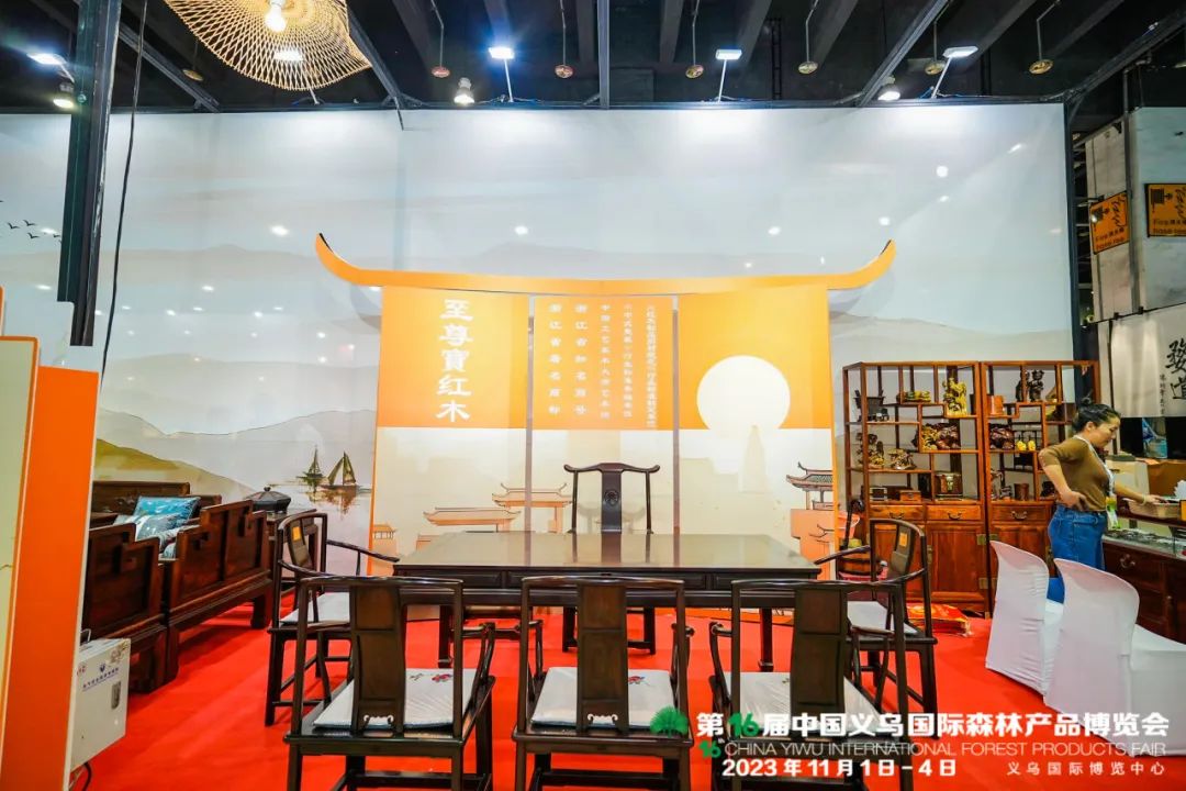 义乌知名的红木家具企业——年年红、至尊宝占据了义乌国际博览中心B1馆的C位。动辄百万的精美红木家具、古朴大气的展陈,都让徜徉其中的客商有美的感受。