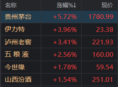 今日收盘,贵州茅台成交额达100亿元,涨幅达5.72%