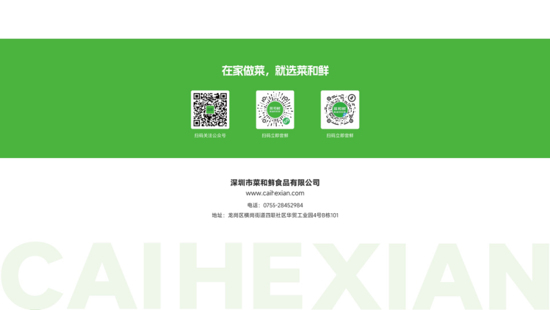 菜和鲜是一家种植养殖,研发生产加工,门店零售于一体的预制菜食品加工型的企业。菜和鲜食品工厂位于深圳龙岗,核心研发团队拥有上百个川湘粤顶尖研发大师,主要研发免洗免切的即配菜,冷藏短保的速烹菜,加热即食的即热菜。