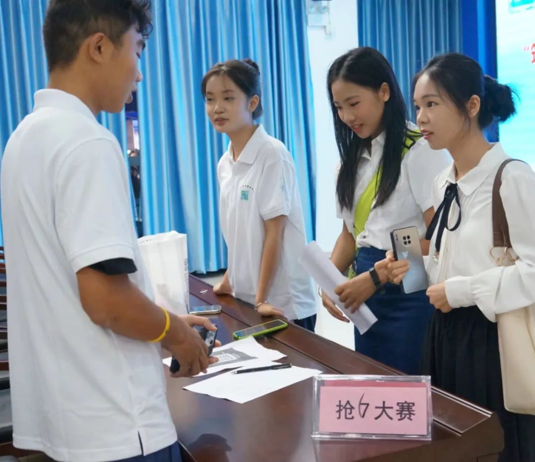 趣味竞赛小游戏“抢6大赛”,是本届博览会的创新活动。同学们以个人选手的身份参加比赛,通过掌握“6”的倍数为自己争取得分。游戏考验了选手们在关键时刻的心理素质和反应能力,不仅具有悬念和观赏性,也从侧面鼓励了同学们要在职场中锻炼随机应变的能力。经过一轮又一轮激烈的较量,参与者的热情达到顶峰,场内观众的赞誉声此起彼伏。