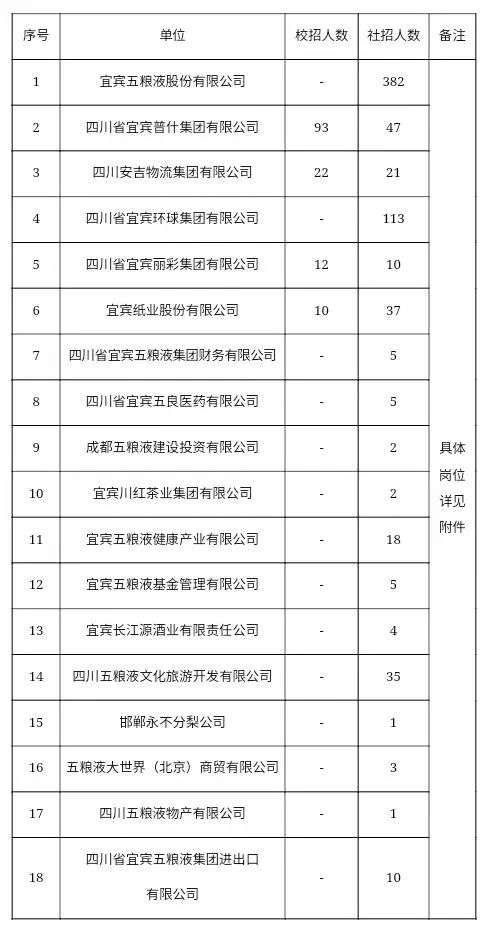 根据五粮液集团公司(以下简称“公司”)业务发展需要,为深入实施人才强企战略,筑牢公司人才支撑,决定招聘一批技术和管理人才。现将具体事宜公告如下。