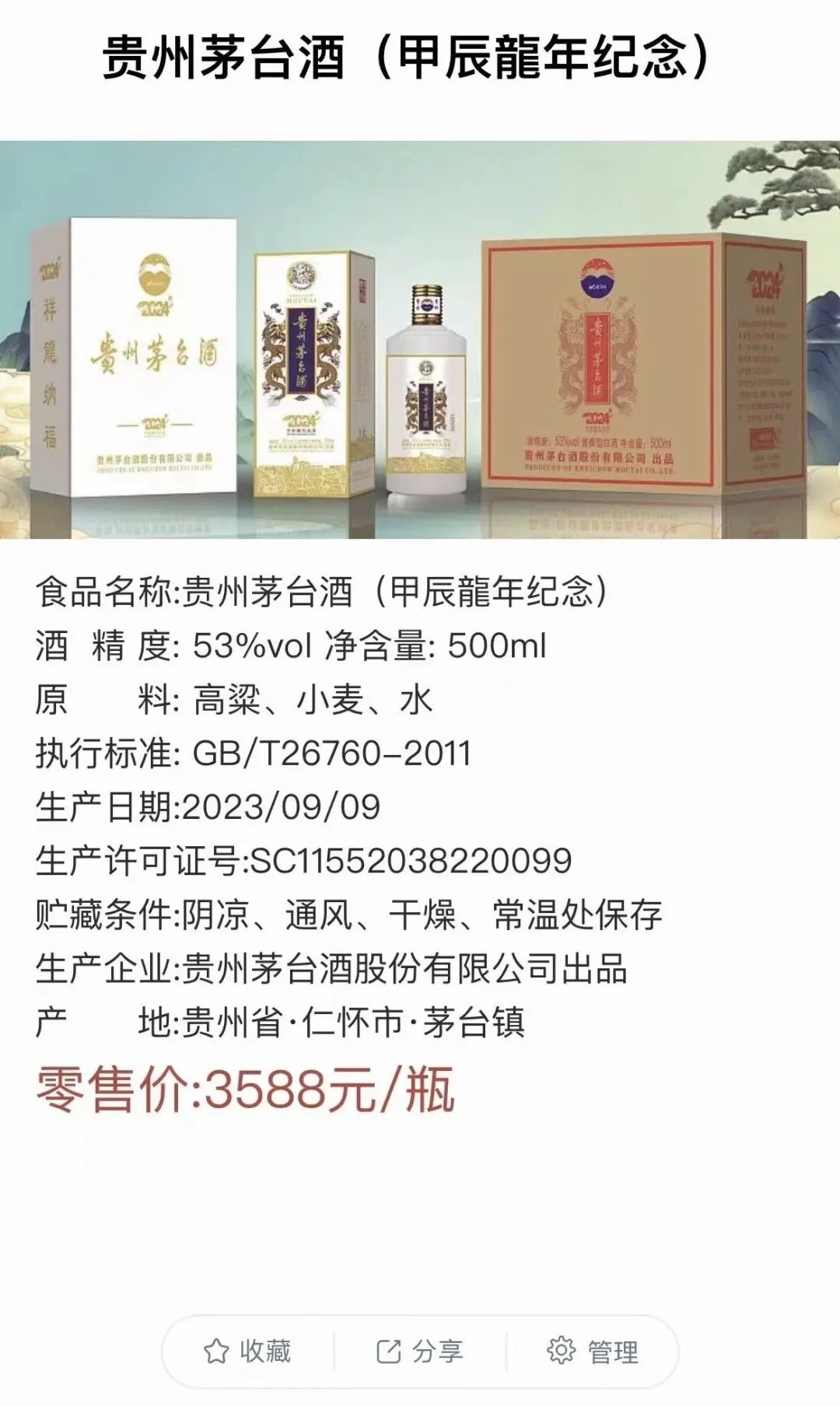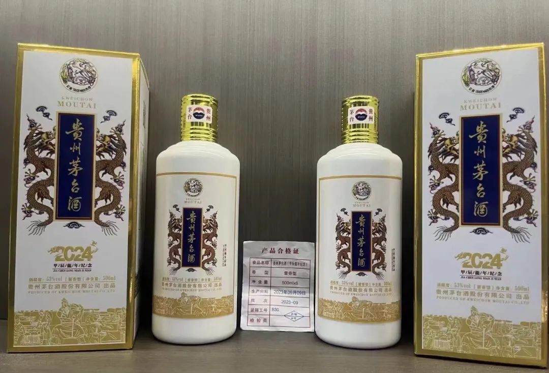此外,设计汲取纳财的瑞兽貔貅为设计元素,民间神话传说貔貅是龙子,浑身宝气,寓意招财进宝,平安和乐;瓶身辅以古典艺术中的水藻纹,赋予生财祝福之意。【顶级佳酿,珍藏之选】龙年生肖纪念酒是茅台酒公司特别为2024年设计的一款限量版酒品。这款酒以茅台镇特有的高粱和泉水为原料,经过多年的陈酿和精心调配,酒体醇厚、香气浓郁,口感细腻顺滑。每一瓶龙年生肖纪念酒都经过严格的筛选和鉴定,确保了其品质的卓越和稳定。作为一款限量版酒品,龙年生肖纪念酒的产量极为有限。据集团公司透露,今年的龙年生肖纪念酒仅生产了1000瓶,每瓶都配有独特的编号和,确保了其真实性和稀缺性。这使得龙年生肖纪念酒成为了收藏家们争相追逐的对象,其价值也随之倍增。