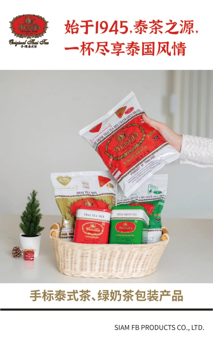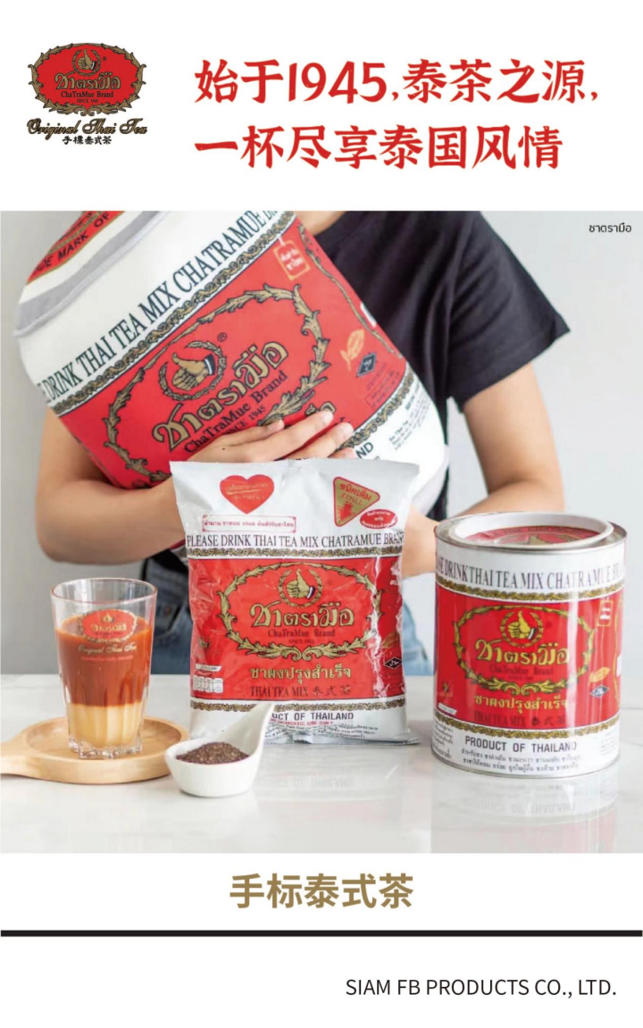 暹罗福贝产品有限公司致力于将泰国茶推向全世界,始终坚持诚信是经商的基本原则,以生产高品质茶叶为目标。公司通过独特的制造工艺,并执行严格的工厂管理体系标准,为泰国消费者在内的各国消费者提供美味泰茶。公司的产品手标泰式茶深受泰国消费者喜爱。