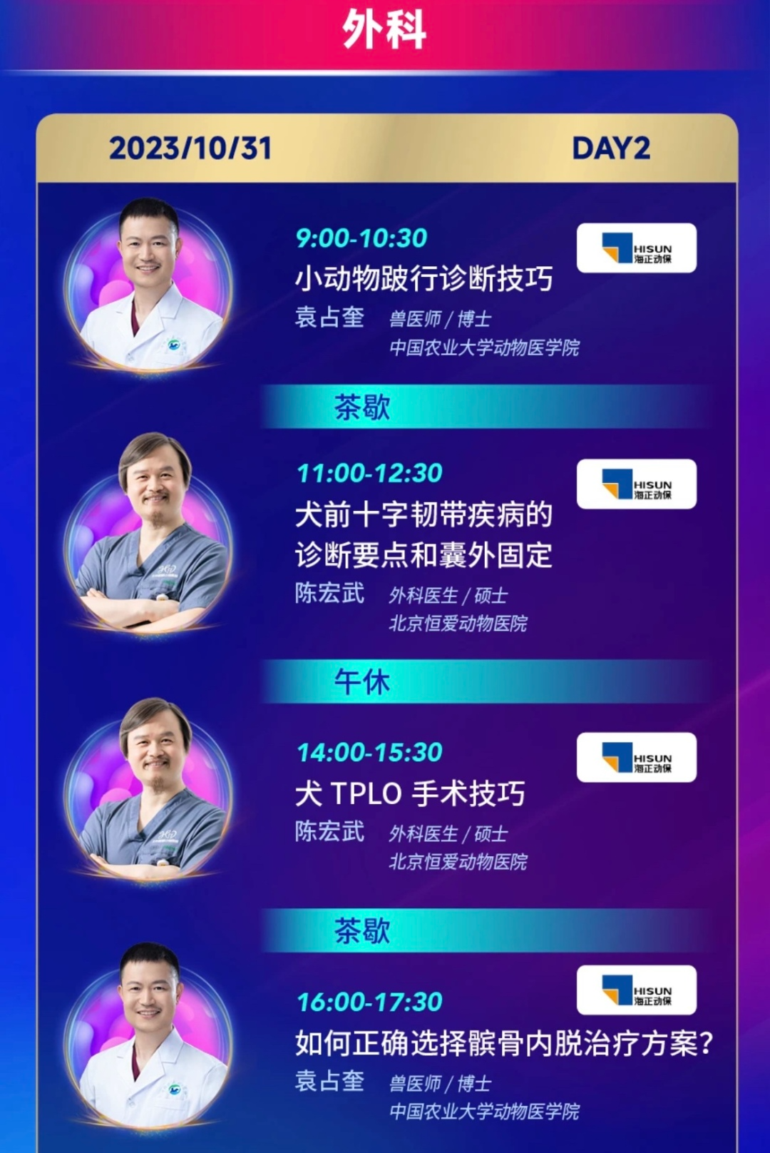 此次学术会议内容根据行业目前热点精心设计,将知识和技能应用到临床工作中。为了助力宠物医生临床诊疗水品提升,本次会议海正动保也为听众带来外科相关的系列课程。