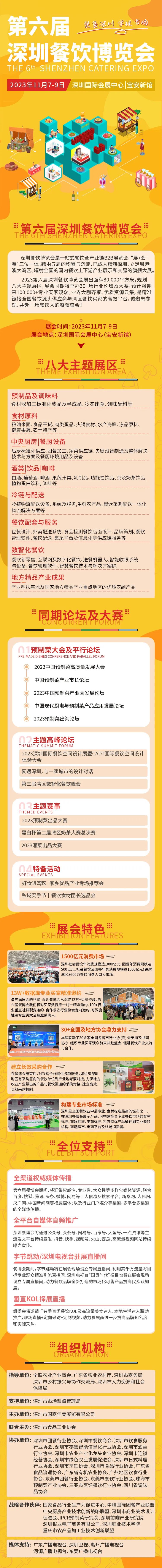 第六届深圳餐饮博览会将于11月7-9 日在深圳国际会展中心-宝安新馆举办!展会将以“更创新、更垂直、更赋能”为主旨,打造极具创新的特色展区、大咖汇聚的论坛、精彩纷呈的大赛!现观众报名通道已启动,诚邀各位莅临现场,共襄盛会!