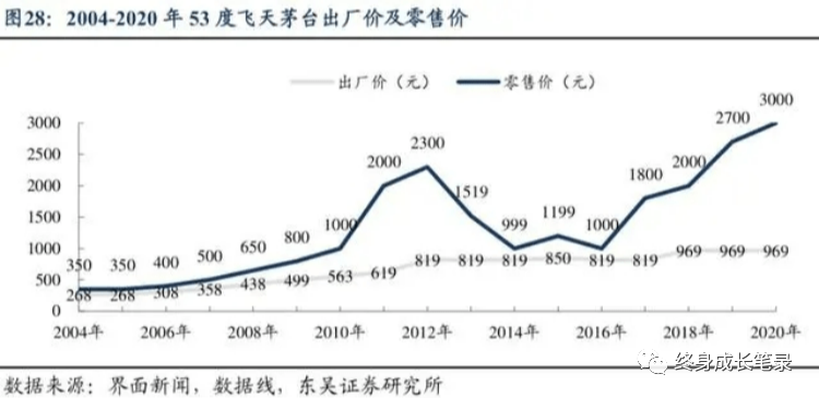 其次,茅台的提价将会对白酒市场竞争格局进行重构。长期以来,茅台的出厂价一直稳定在969元,这在一定程度上对五粮液和泸州老窖构成了压力,导致它们的出货价也只能维持在930元和900元,低于出厂价。因此,此次提价打开了行业的天花板,为各个价位段的白酒企业提供了发展空间。