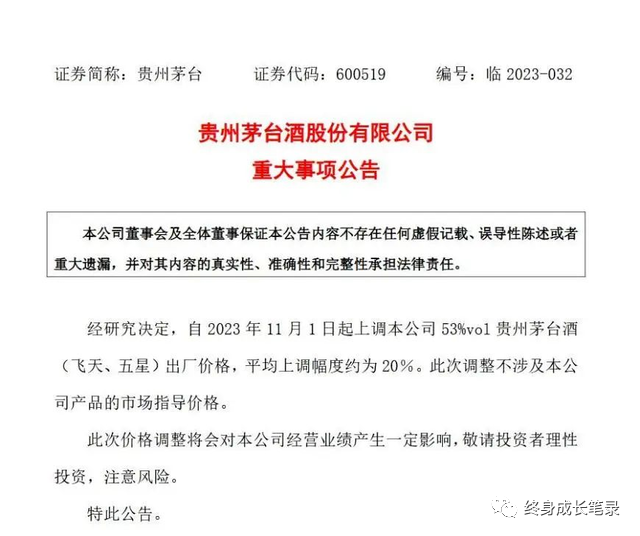 茅台的涨价一直以来都备受关注,而在经过六年的传闻后,终于得到了官方的确认。茅台昨晚深夜发布公告称,公司核心产品飞天、五星出厂价格上调20%,至此飞天茅台从969元的出厂价上调到1169元。