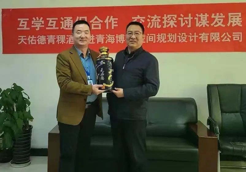 据悉,青海博韬空间规划设计有限公司成立于2011年,是一家一站式综合性全过程咨询管理服务商,拥有规划、设计、咨询、环评、水保、地灾、水资源、测绘等10余项服务资质。公司现有规划、设计、咨询、环评、水保、水工环、水资源、测绘行业专家20余人,国家行业注册工程师10余人,紧紧围绕公司发展战略,依托“一站式”全过程咨询服务理念,通过拓宽领域合作,延长产业链,促进技术创新,充分发挥企业优势。以公司建立的平台为依托,以全过程咨询服务为突破口,以新技术研发和跨界融合为手段,加大全过程咨询服务管理的科技含量。在纷繁复杂的形势中识变、应变、求变,在危机中育先机,于变局中开新局,抓机遇,迎挑战,趋利避害,奋勇前行,实现博韬的跨越式、高质量发展,打造博韬的行业领军地位,努力成为中国全过程咨询管 理服务行业“全产业链”和全过程咨询管理生态圈的缔造者,完成从 服务经济到创造经济的华丽转变!座谈会上,青海博韬空间规划设计有限公司总经理侯国福先生首先对天佑德青稞酒公司一行领导的到来表示热烈欢迎,天佑德青稞酒公司品牌宣讲大使陈玉洁对天佑德青稞酒的发展历程做了详细的讲述。青海博韬公司侯总表示:发展和支持地方产业是最有效的经济活力,地方产业具有独特的自然资源禀赋、历史文化内涵和产品市场优势,有助于打造地方特色品牌,促进地方产业特色发展。接下来将一如既往的支持天佑德产品,关注天佑德企业。最后,天佑德青稞酒公司许锦文书记向青海博韬公司发出诚挚邀请,希望青海博韬公司领导前往天佑德青稞酒公司参观指导,并为企业双方互利合作等方面内容进行沟通交流。天佑德青稞酒公司作为中国上市白酒企业之一,在此次名酒进名企活动中向青海博韬空间规划设计有限公司送出了国之德真年份(5L装)纪念酒以供品鉴收藏,传递着天佑德青稞酒公司对自身品质的信心,以及与企业开展深度合作的诚意。
