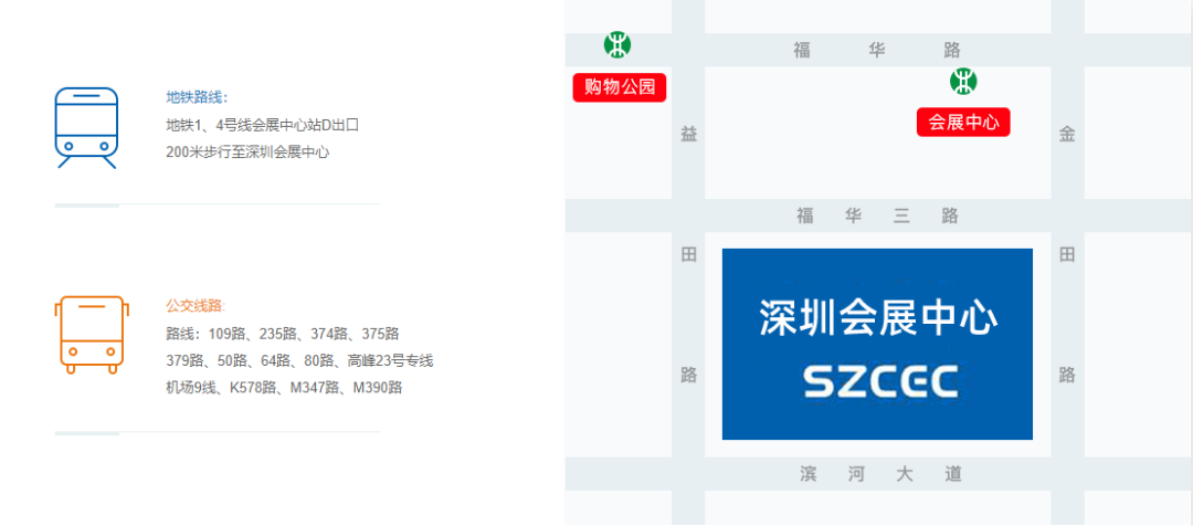 地铁:福田口岸站(4号线/清湖方向)→会展中心站(1号线、4号线 D出口,约 12分钟);