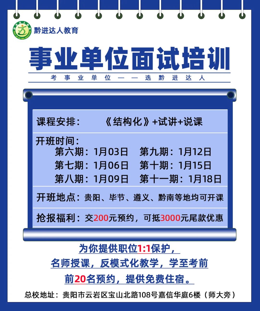 事业单位面试培训课程:结构化+试讲+说课,第六期1月3日开课,现在报名交200元预约金抵3000元尾款优惠。(事业单位面试内容根据各个地方及岗位变动)