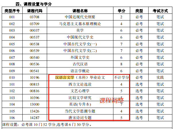 二、毕业时间延长:以前的汉语言文学专业考11门,1.5年就考完了,课程调整后,英语的学分占比降低,选考的科目增多,现在需要要2年才能考完。