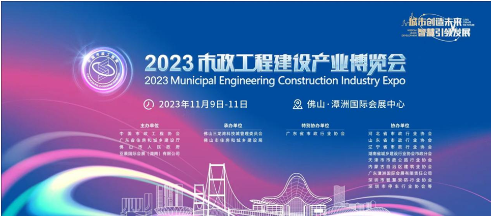 博览会以“城市创造未来,智慧引领发展”为主题,由中国市政工程协会、广东省住房和城乡建设厅、佛山市人民政府、亚展国际会展(湖南)有限公司主办,佛山三龙湾科技城管理委员会、佛山市住房和城乡建设局承办,广东省市政行业协会特别协办,集会、展、赛、评、奖于一体,将于11月9日-11日在广东佛山潭洲国际会展中心举行。