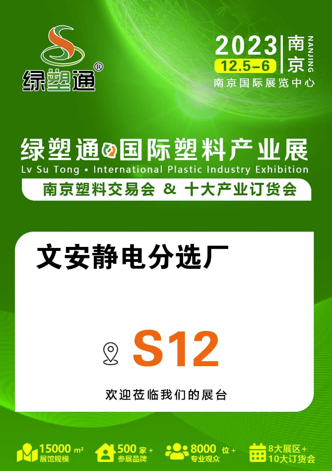 【交易位展商—展位号:S12】文安静电分选厂诚邀您共聚“国际塑料”12月5~6日丨南京国际展览中心