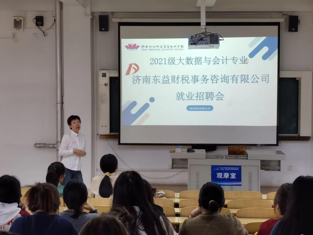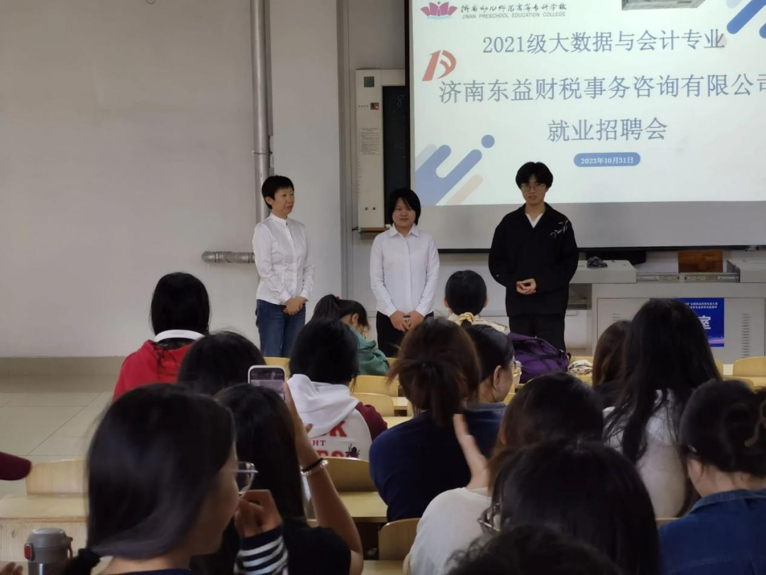 为了拓宽我院大数据与会计专业毕业就业渠道,帮助学生把握优质就业岗位,使学生更加了解市场需求,10月31日,我院诚邀济南末益财税事务咨询有限公司赵会计与20级李秀敏学姐召开就业招聘会。