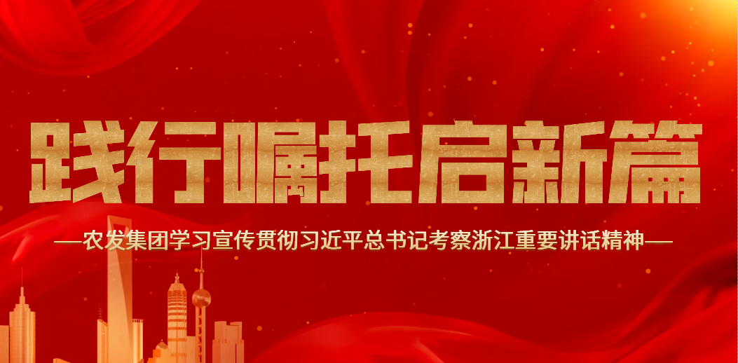 习近平总书记在考察浙江期间作出了系列重要指示,亲自为浙江的改革发展把脉定向、指路引航,为浙江下一步做好各项工作提供了根本遵循。农发集团全系统迅速兴起学习宣传贯彻习近平总书记考察浙江重要讲话精神的热潮,进一步坚定持续推动“八八战略”走深走实的信心,激发干在实处、走在前列、勇立潮头的激情,承担好责任、发挥好功能,顺应新变化、启迪新思路,奋力把习近平总书记擘画的宏伟蓝图转化为干事创业的施工图、高质量发展的实景图。
