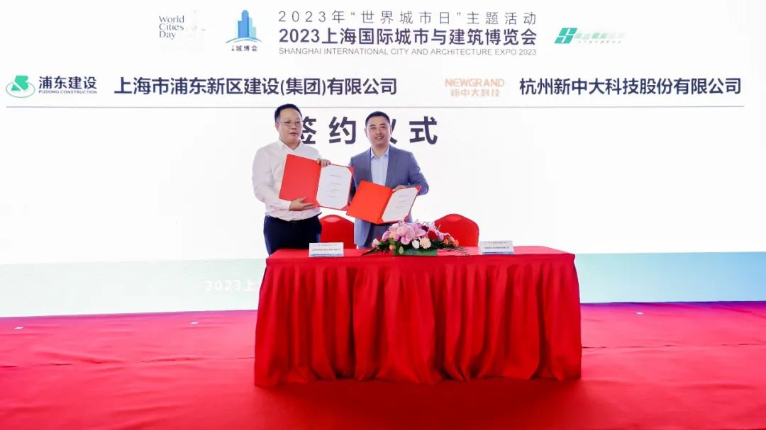 杭州新中大科技股份有限公司上海区总经理钱和健以《数字化转型赋能工程企业高质量发展》为主题做了演讲报告,同时介绍了新中大科技与上海浦东新区建设集团合作项目并和上海浦东新区建设集团有限公司代表蒋朝晖主任现场签约。