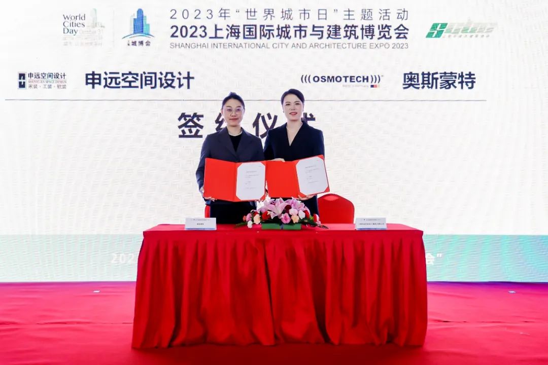 上海申远空间设计 (集团) 有限公司材料部总监馨然为观众详细介绍了申远,上海华城副董事长张海峰对合作项目做了说明。奥斯蒙特业务总监崔婉怡,申远空间设计材料部总监馨然作为代表进行签约。