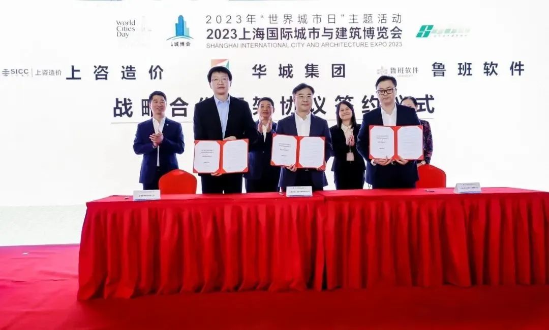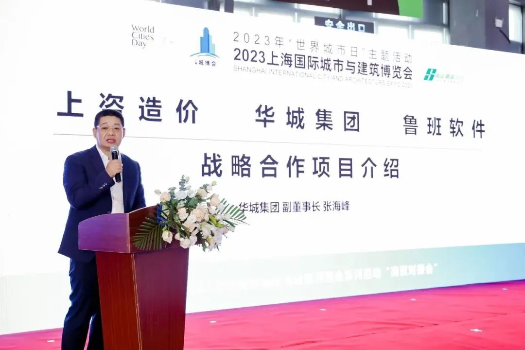 鲁班软件总经理方明围绕《看得见的未来 可计算的城市》进行主旨分享。上海华城副董事长张海峰作项目介绍。上咨造价市场发展部总经理周惠涛、上海华城执行董事薛苹、鲁班软件工程顾问总经理王永刚代表三方签约。上咨造价副总经理王静、上海华城副董事长张海峰、鲁班软件总经理方明出席现场并见证签约。