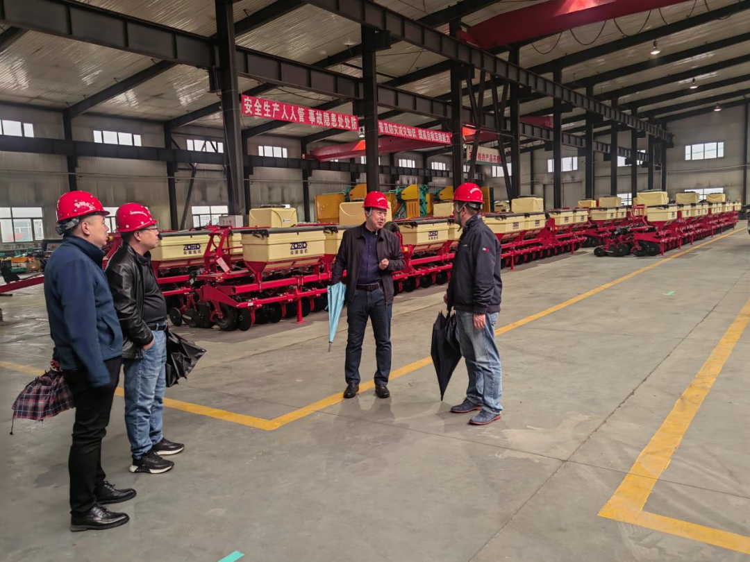 会前考察团一行先后参观了农服集团宾西智慧农机产业园区高端智能农机装备示范区和装配生产线车间。