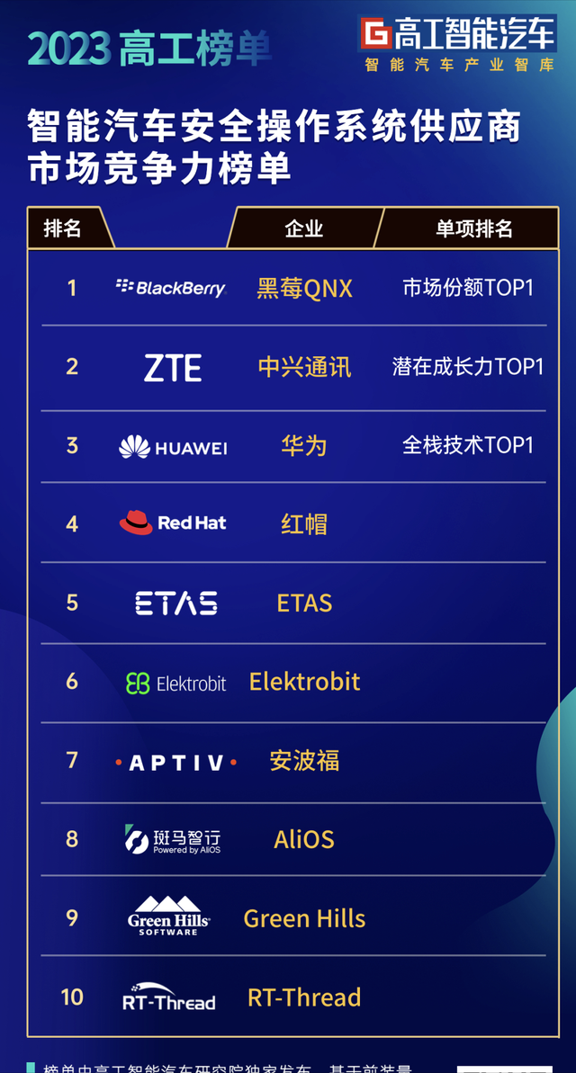 顺便查了一下目前智能汽车操作系统 市场的排名如下: