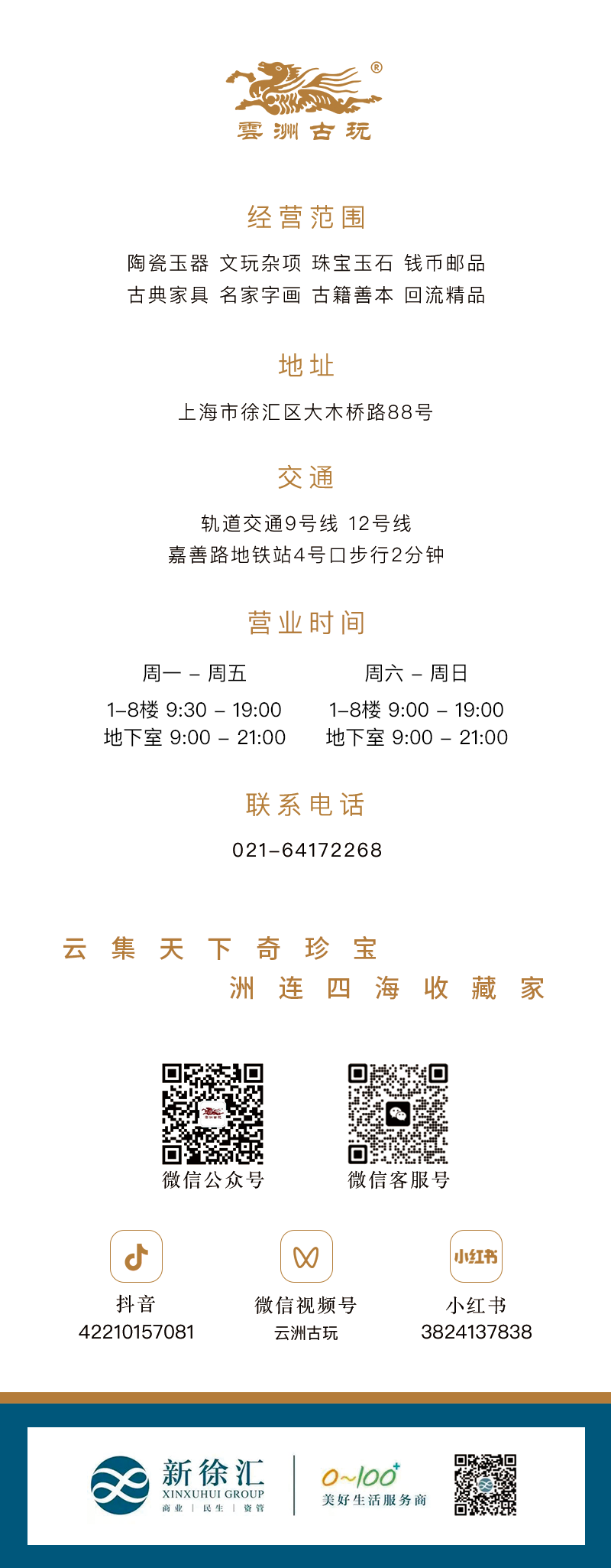 民间收藏发展薪火相传,亟待发现与发挥青年的力量。云洲古玩也将致力于搭建展示青年收藏文化成果和市民文化风采的平台,同时让更多青年收藏家正式亮相海派收藏舞台。