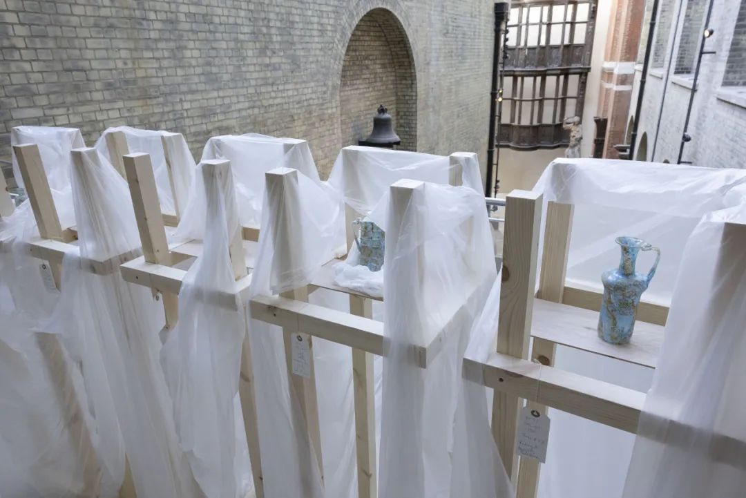 作为过去 14 年来的设计节主枢纽,维多利亚和阿尔伯特博物馆(Victoria and Albert Museum,简称 V&A)的“快闪”装置总是有效将现代设计与古文物进行并列而产生新视点。今年的特别委托虽比往年少了些,但却因着重于发掘多元设计和主题而拥有更多启发性。譬如,巴勒斯坦建筑师、艺术家兼 V&A 研究员 Dima Srouji 就从其出生地巴勒斯坦探究了其玻璃制造史。从中她发现到,该地出土并收藏于博物馆内的玻璃器皿,都在“考古”过程中应用了大量女性来挖掘——尤其当她们需要在尸体和棺木中取出这类属于“陪葬品”的文物时。