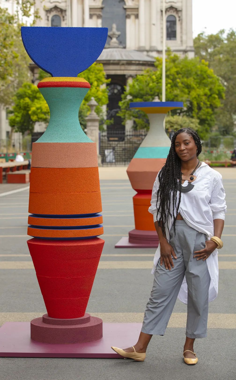 非裔女设计师 Simone Brewster 在城内的 新徒步区 Strand Aldwych 展示了五个大型的软 木制雕塑作品“Spirit of Place”。Supported by Amorim