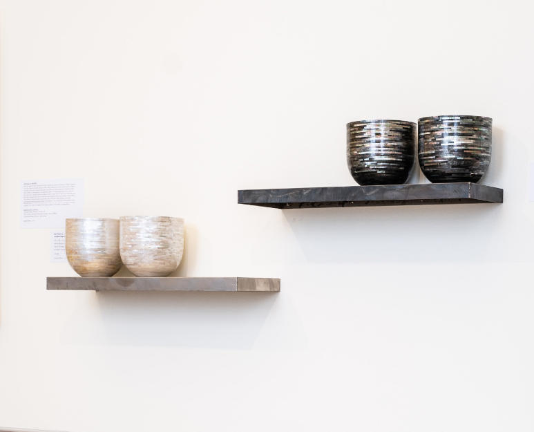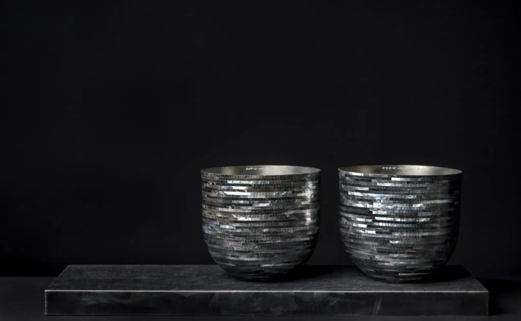 Kim Hyun-Ju 的 Another Pearl 系列采用了传 统的“Kkeuneum-jil”珍珠母贝镶嵌技术制成器皿。©Lloyd Choi Gallery