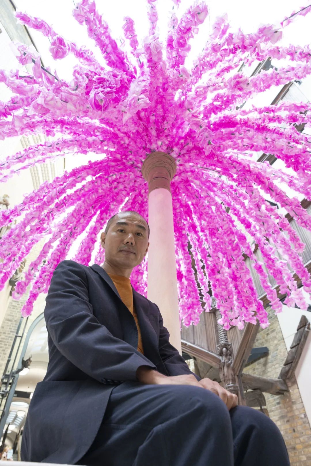 名为“花神社”(Hana Mikoshi)的装置,由伦 敦 Hayatsu Architects 建筑事务所合作与 V&A 合 作呈现。©Victoria and Albert Museum, London