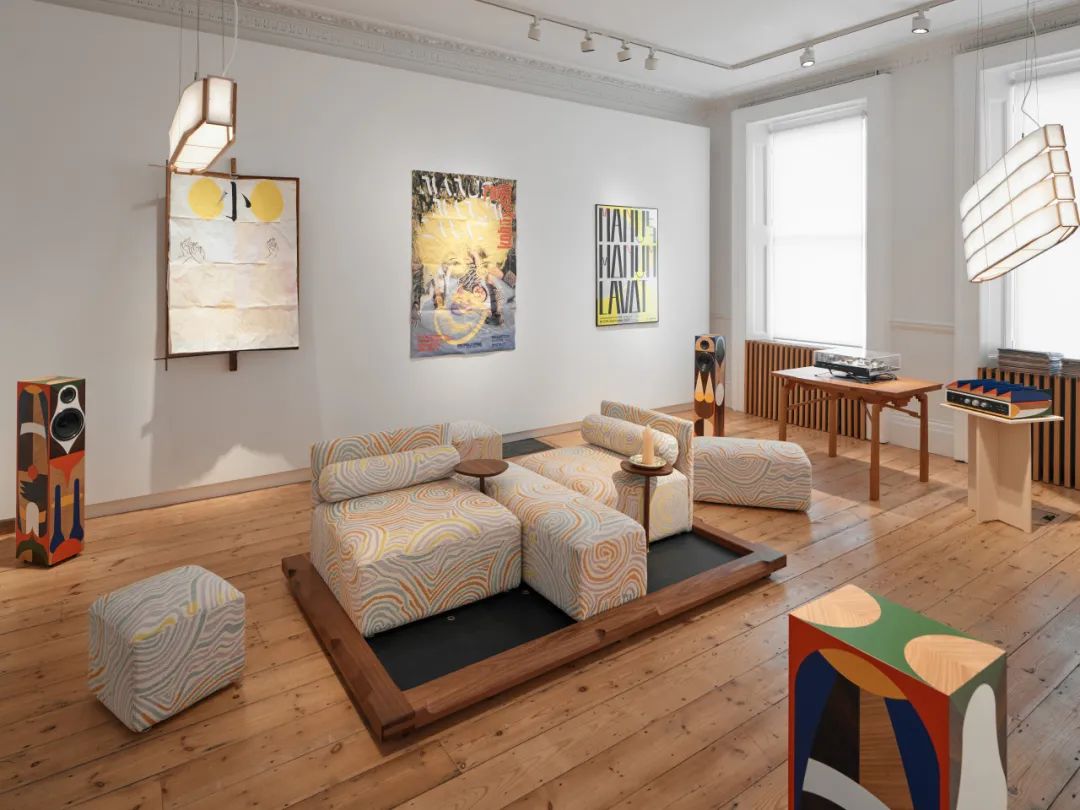 透过黑胶唱片播放的音乐,小林李行(Rio Kobayashi)让人们进入了一个宛如他个人的起居室的空间内:从 Furikake 吊灯、Piece of Cake 沙发、Fish Table 餐桌到 Wiggle Paravant 屏风等设计,皆体现出他对人际关系的深刻理解。作为他个人的首次英国个展,与其说在现场展示与回顾自己过去的作品,他反倒是选择让许多其他创作者参与进来,形成一个联展和活动空间。以“将人们聚集在一起并享受乐趣”为座右铭,他认为,或许这样的个展会或许会被误解为是一种享乐主义和肤浅的生活态度,但本质其实是:通过在物质世界和内心世界创造高质量的生活来实现幸福。