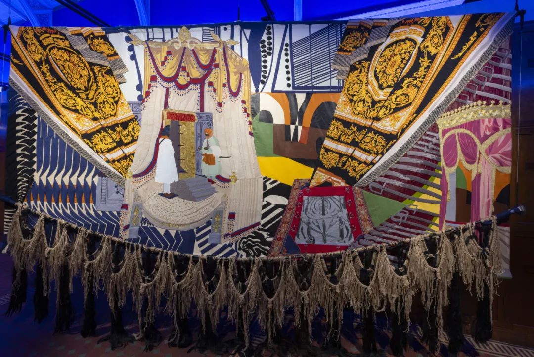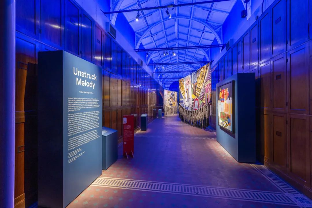 而“未敲击的旋律”(Unstruck Melody)装置则呈现了加拿大籍的艺术家 Nirbhai (Nep) Singh Sidhu 与英国艺术组织 “Without Shape Without Form”的合作,将当代锡克教教义化作大型挂毯,并透过轻盈的敲击声,提供了深度聆听的时刻来消除杂念。Nep 称,设计这个“将灵性实践和知识转移到一个新构思”的装置不仅希望观者能更重视他们内心深处的好奇心,也能体会到锡克教教义中所体长的想法:如持续性的同情心理念以及日常生活中的谦逊和慷慨。