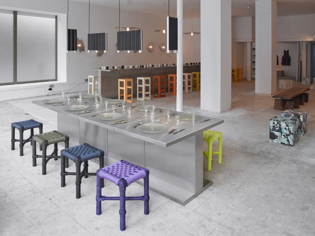另一边厢,伦敦东区的“铁三角”肖尔迪奇设计区域(Shoreditch Design Triangle)仍在成立 15 年后的今日热闹无比。有着“全方位了解伦敦设计场景的理想场所”的美誉,这里从知名品牌到新生代策划的混合已成为自然的景象。首当其冲的就有“元老级”的 SCP 品牌。如同与 Tom Dixon建立的合作,该品牌旗舰店每逢设计节都会纳入其合作伙伴和另类设计的策展,而今年就包括有 John Pawson 的 Wonderglass 系列,还有“维修店家”Sons of Beasley 的现场制作。