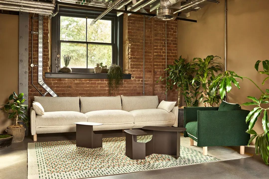 所幸,Tom Dixon 在寻求新人才、科技和协作的热情上是让人鼓舞的。今年除了有引爆舆论热潮的“世上首位 AI 设计师”Tilly Talbot 外,还有企图挑战“快家具”(Fast Furniture)的新品牌:Cozmo。起源于网店的这家品牌,希望能通过将易于使用、持久且可定制的设计品带入现代生活。首款模块化沙发以及适逢设计节推出的 Cozy 扶手椅和 Cutout 钢制嵌套茶几,都出自英国设计工作室 Raw Edges 之手。设计师表示:“我们与 Cozmo 的合作始于“沙发夹克”,最初的构想是为了防止浪费,同时提供可定制性。”所以,除了沙发面料和腿部的多样选择外,沙发座垫中所使用的填充物,乃采用了新研发材质——据悉是泡棉和羽毛的组合——让其拥有了适中的舒适度,可满足最为挑剔的消费者。