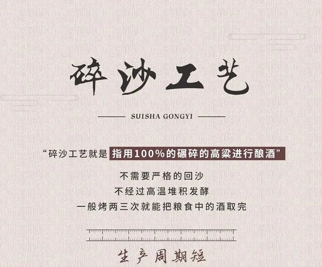 它是用粉碎的高粱直接蒸煮,不需要严格的“回沙”工艺,一般烤2到3次就能把粮食中的酒取完,生产周期更短且出酒率较高。