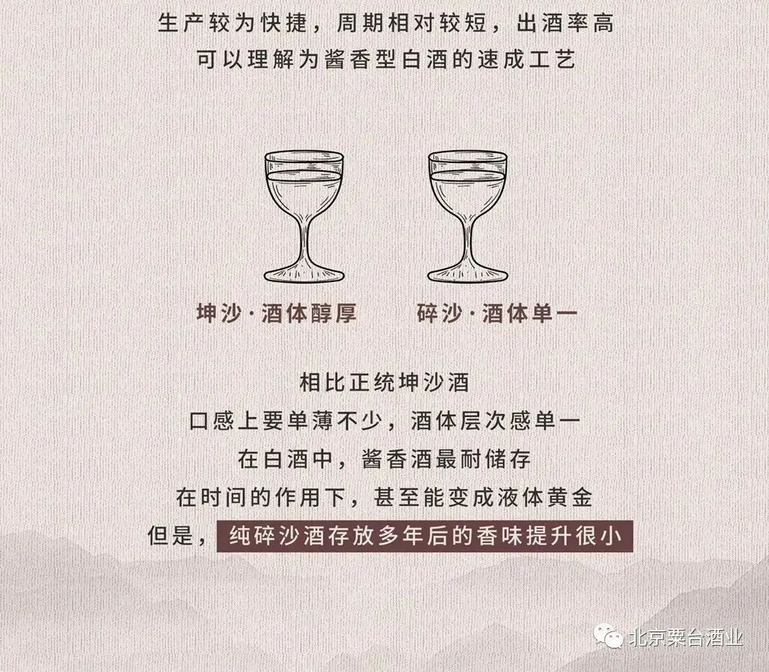 原料方面:坤沙酒、碎沙酒、翻沙酒都属于粮食酒,而串沙酒则属于酒精勾兑酒。