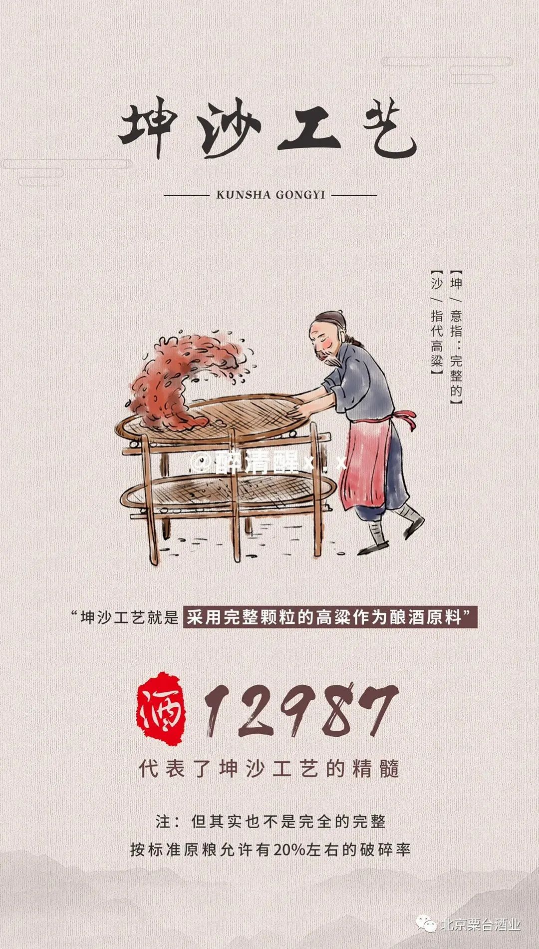 同样的坤沙制酒工艺,酿制周期长达1年,期间历经2次下沙、9次蒸煮、8次发酵以及7次取酒。