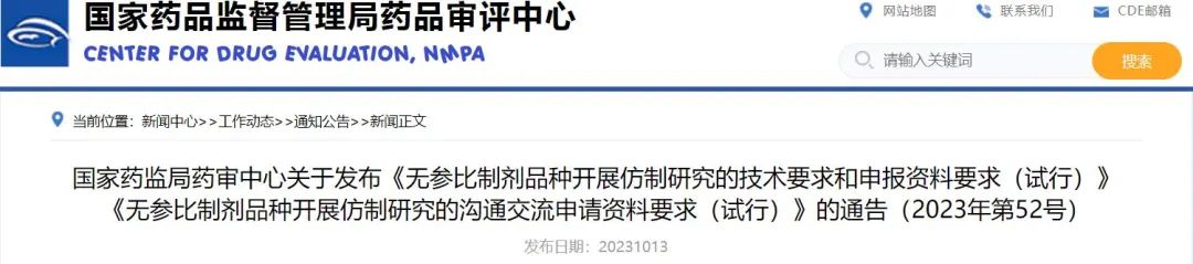 国家药监局药审中心关于发布《无参比制剂品种开展仿制研究的技术要求和申报资料要求(试行)》《无参比制剂品种开展仿制研究的沟通交流申请资料要求(试行)》的通告(2023年第52号)