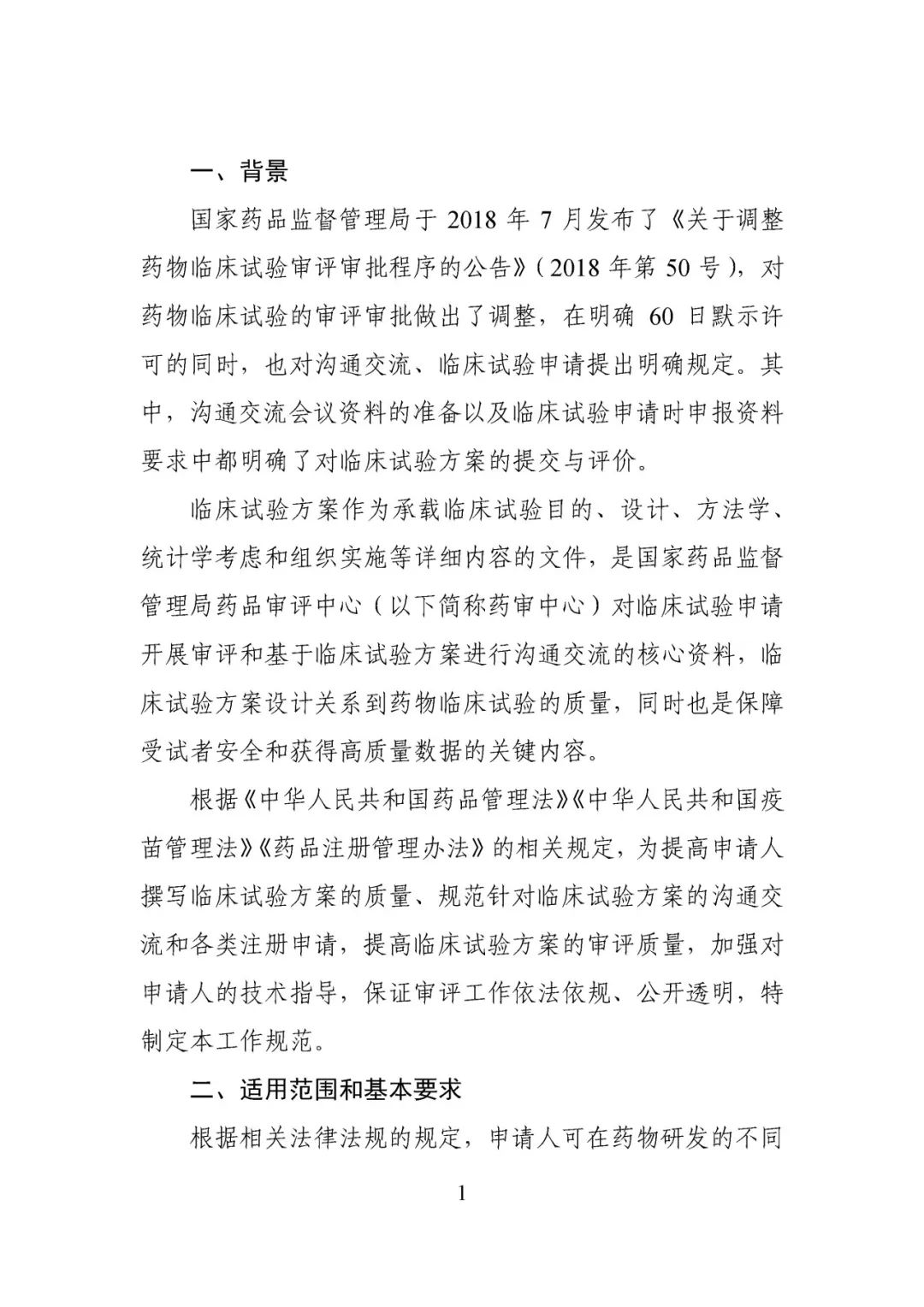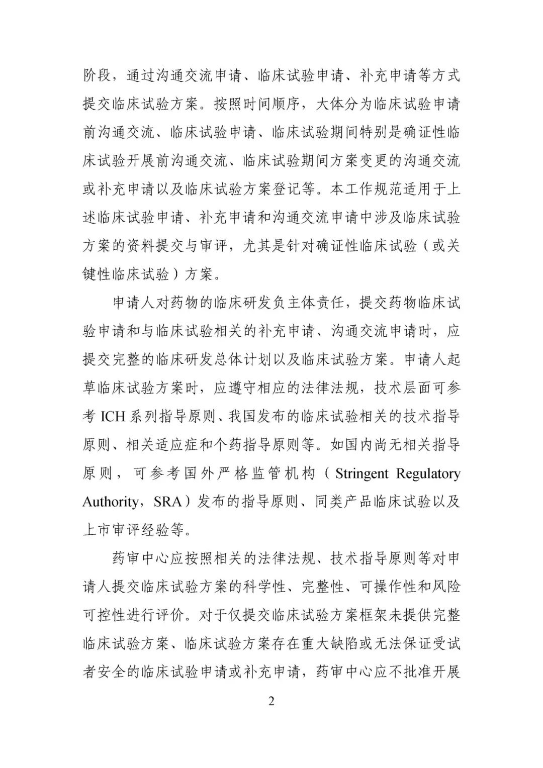 为提高药品注册申请人撰写临床试验方案的质量,规范临床试验方案有关沟通交流和各类注册申请,提高临床试验方案的审评质量,药审中心组织制定了《药物临床试验方案提交与审评工作规范》(见附件)。经国家药品监督管理局审查同意,现予发布,自发布之日起施行。