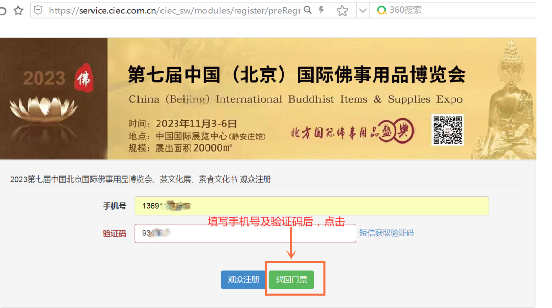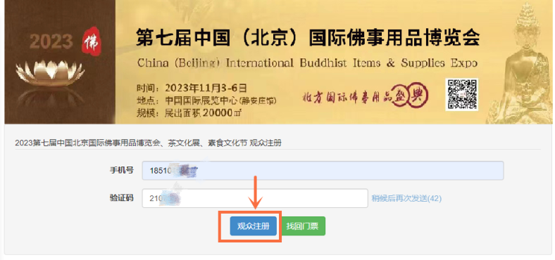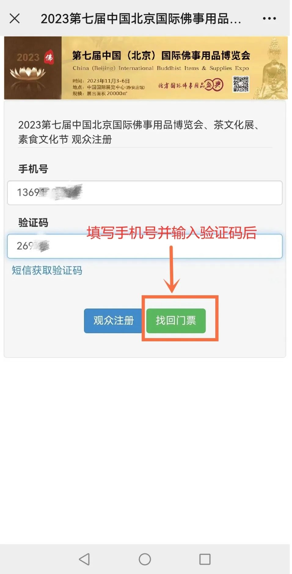 另,“找回门票”步骤--已经注册过的朋友想回看二维码,可点击网站首页“观众登记”,进入页面填完手机号与验证码后,点击“找回门票”即可查看二维码,无需重复登记。