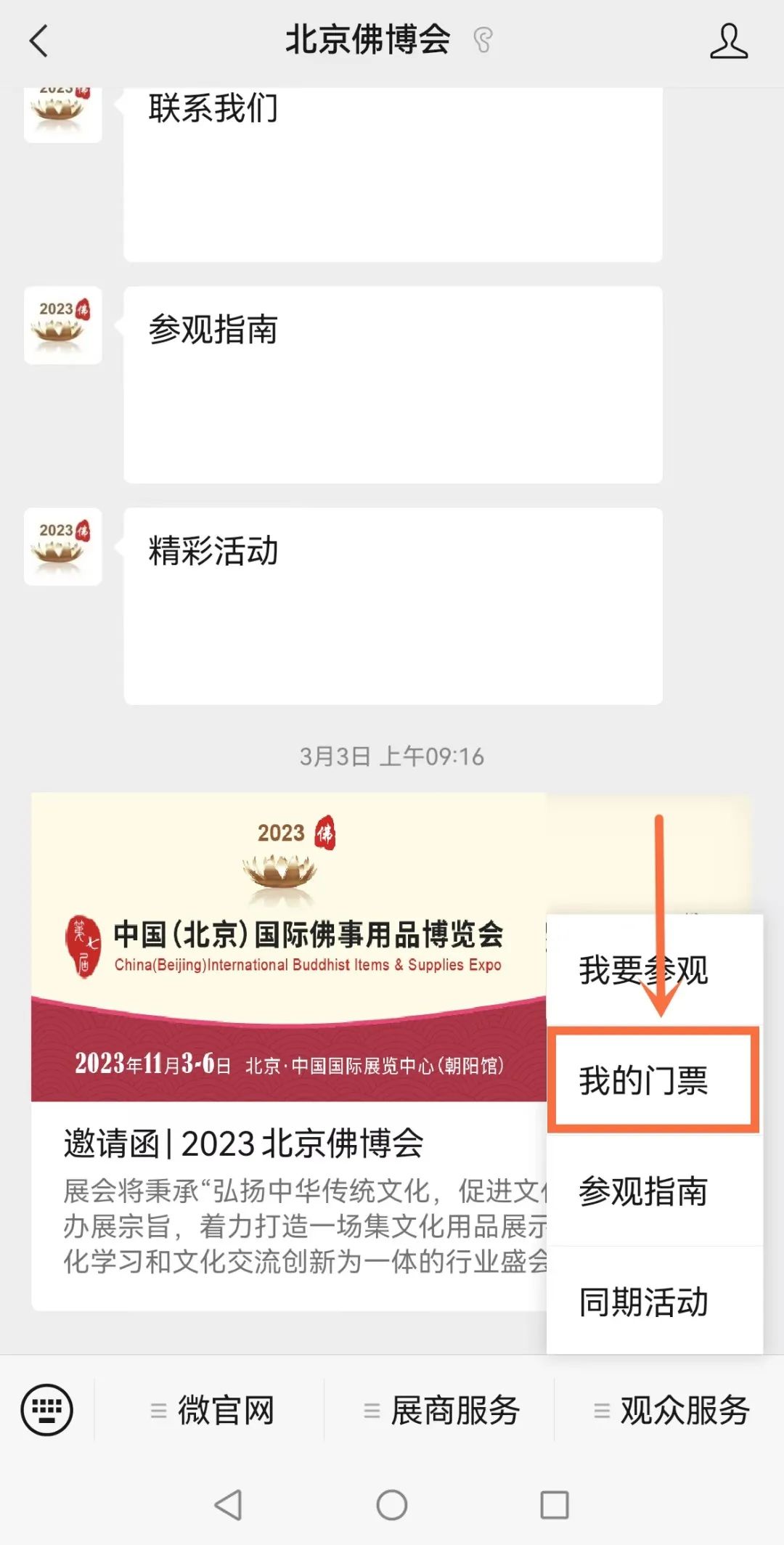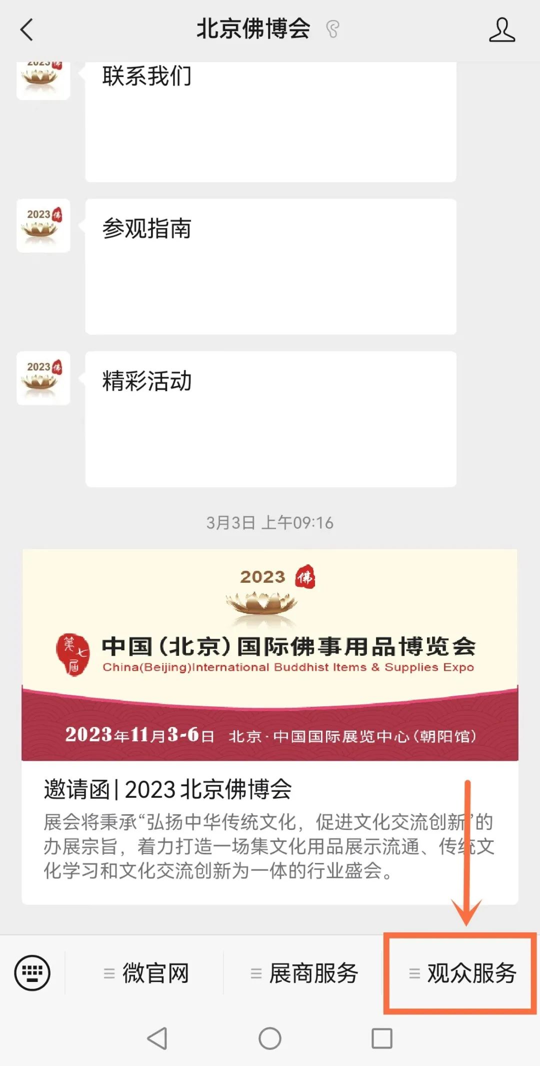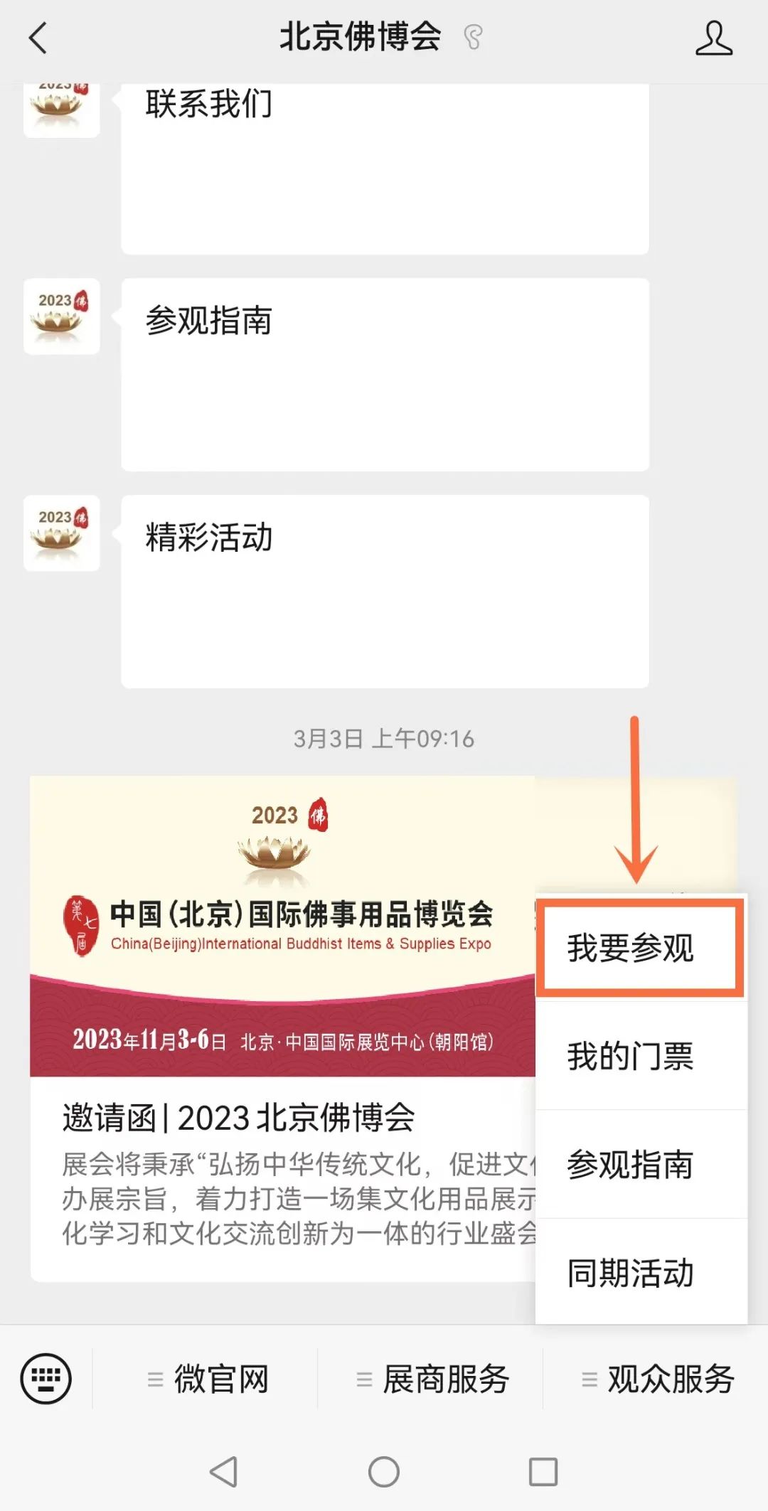 进入公众号后,点击菜单栏“观众服务”里的“我要参观”。