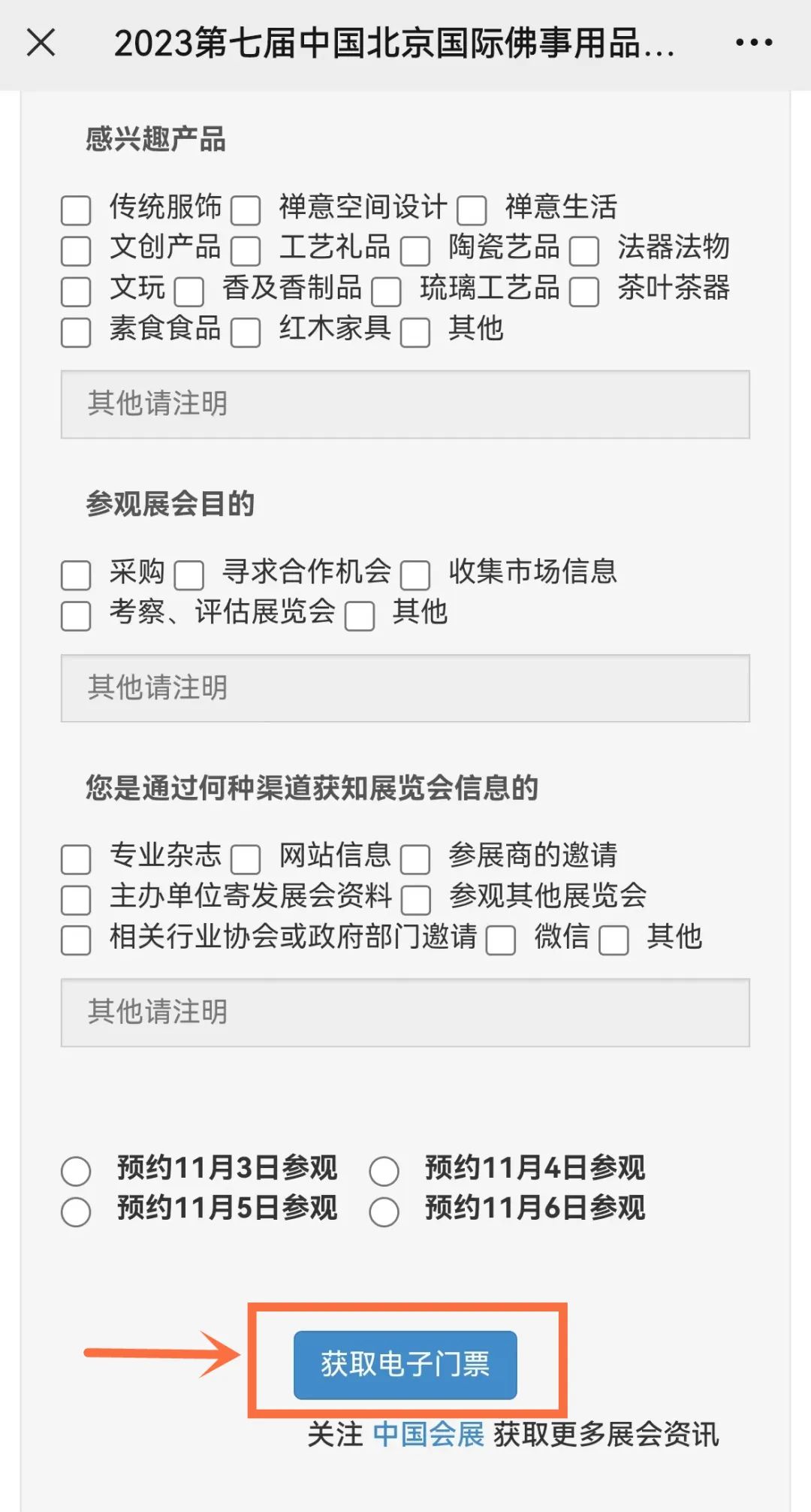 3、无法注册的朋友不用担心,可于展会期间在中国国际展览中心(朝阳馆)正门1号门领票窗口现场登记免费领票,展会现场也是可以领取到参观票哒。