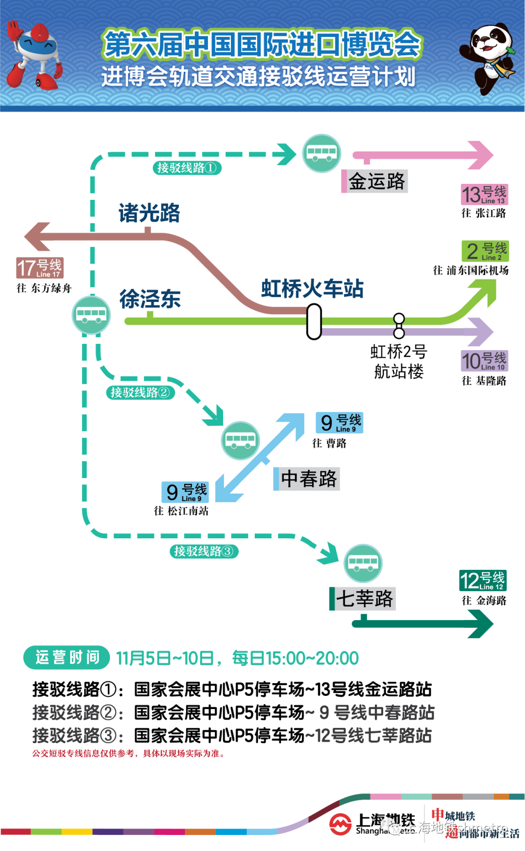 徐泾东站11月5日至10日展会散场时段设3条轨道交通接驳线