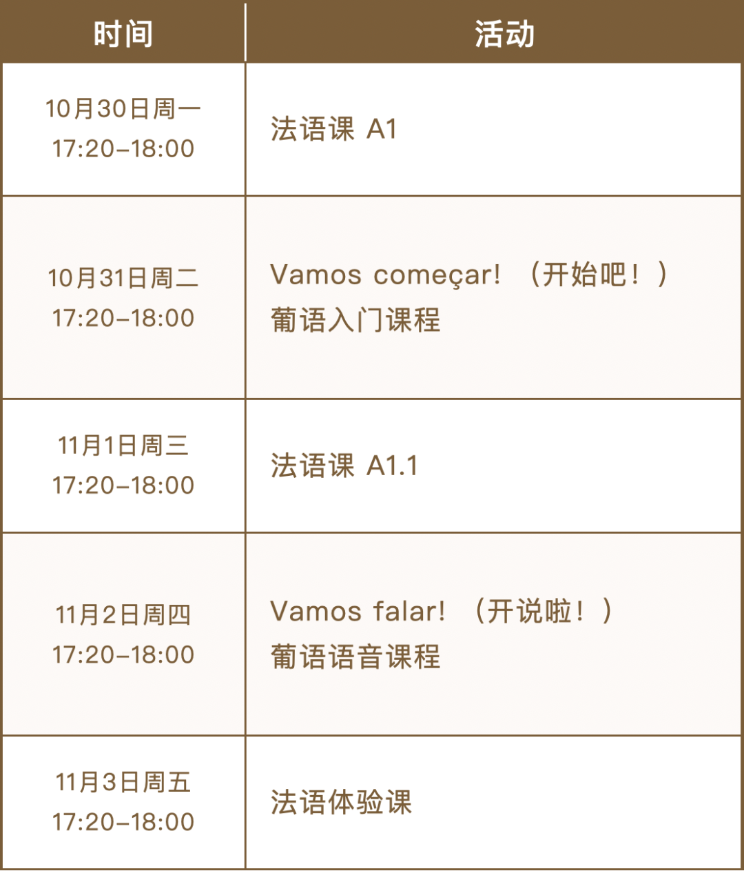 活动安排: