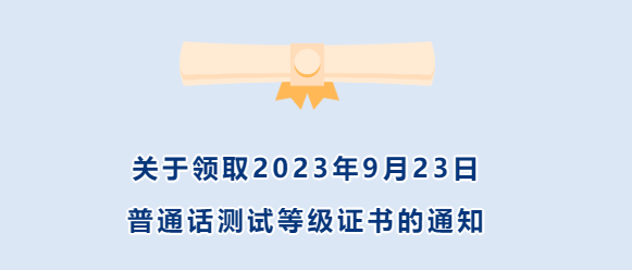 ❍关于领取2023年9月23日普通话测试等级证书的通知