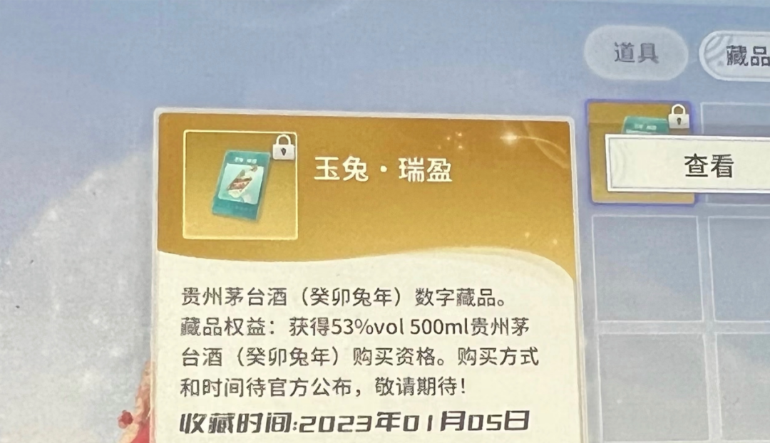消费者获得的兔年茅台酱香系列酒数字藏品